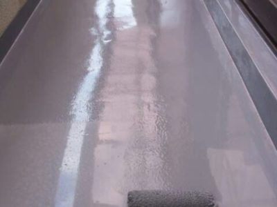 通気緩衝用のシートを貼っていきます。このシートの上にウレタン塗装を施すことによって下地の湿気などによるフクレを防ぎ塗装が長持ちします。