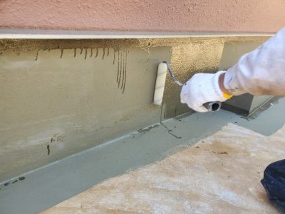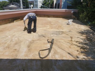 プライマーは密着性を高める接着剤のような役割があり プライマーを使い密着性が高めることで、防水材が剥がれにくくなり、防水本来の性能や耐久性を発揮しする重要な工程になります。