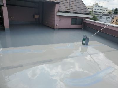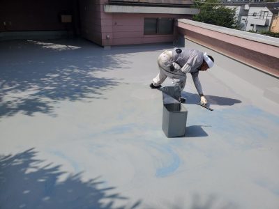 トップコートはウレタン防水層を自然環境の風雨や太陽光の熱や紫外線から保護をする効果とても高い性能があります。