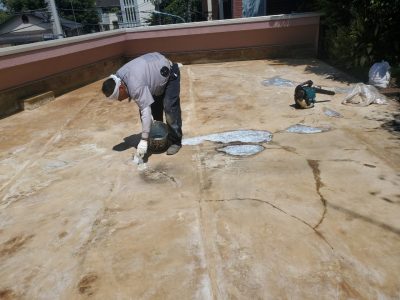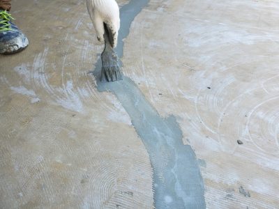 クラックをしっかりと埋めることで上に塗る防水材に挙動の影響を与えないためです。