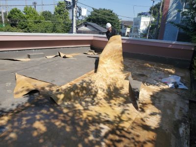 仮に接着していように見えるシート防水上に新たな防水を塗っても下地のシート防水が浮いたり剥がれたししたら新たな防水層も一緒にダメになります。