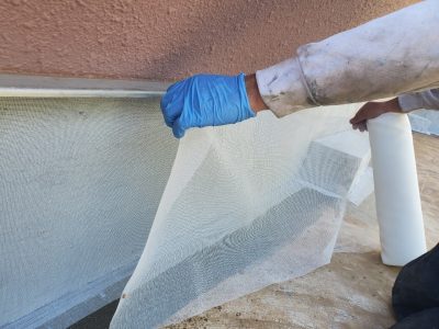 立上りや端末は補強クロスを貼ってその上からウレタンを塗ります。