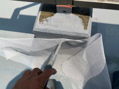 屋上 塩ビシートジョイント部・補強クロス貼り