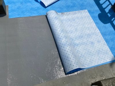 通気シートは下地の湿気を通気する機能と下地が動いてクラックなどな発生した場合の緩衝効果があります。