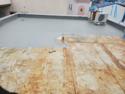 トップコートの性能が失われると次に防水層の劣化が始まるのでとても防水工事にとってとても重要な最終工程となります。