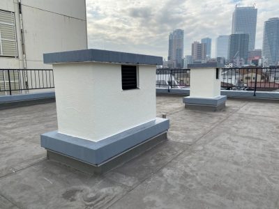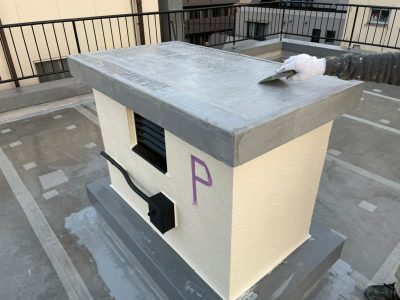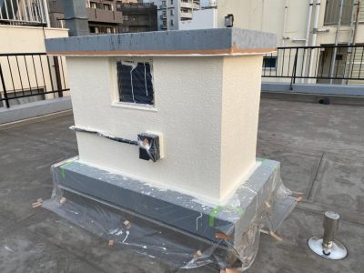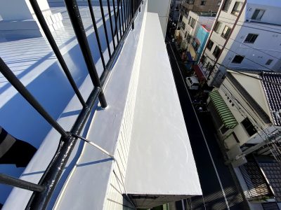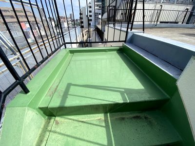 また、今回外階段は4階から屋上までの防水層を施工します。