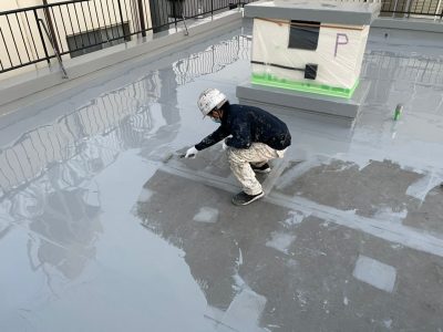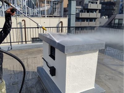 防水面は平面なので汚れが付着しやすく、完全に汚れを除去してから防雨水を行うことは防水材の密着性を高めるために不可欠な作業です。