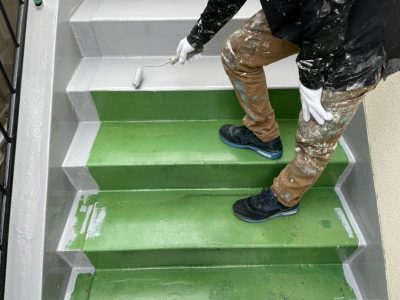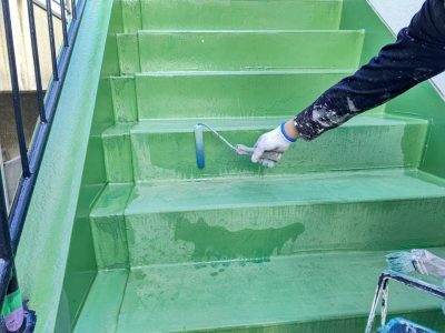 外階段 1層目ウレタン防水塗布