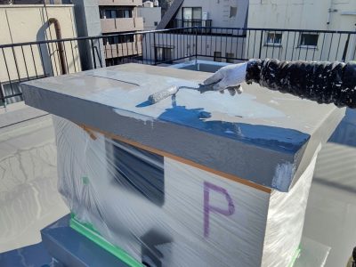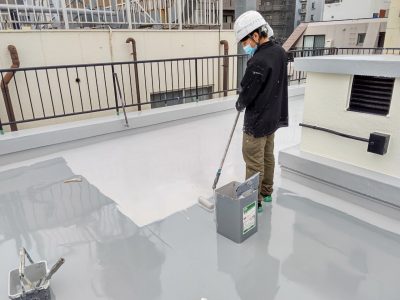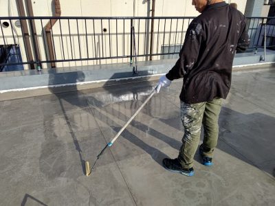 屋上 1層目ウレタン防水塗布