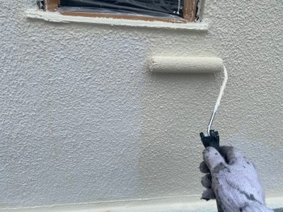 3回目の仕上げ塗装です。ムラ無く規定塗布量をしっかりと塗ります。同じ塗料を使用しても、塗り方によって耐久性が全く違ってきます。