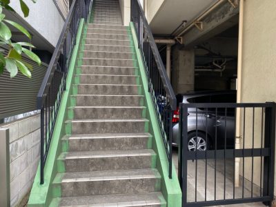 また、今回は手摺を全て塗装施工します。