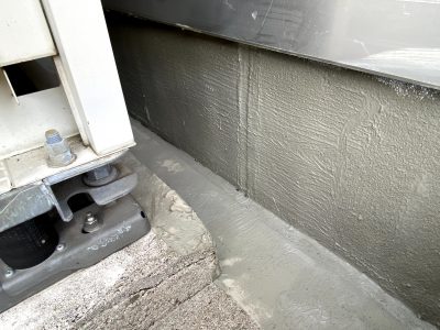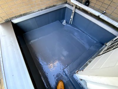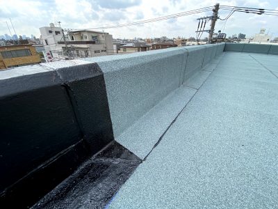 撤去後、屋上はアスファルト活性剤、ルーフは樹脂モルタルを塗って下地を整えます。