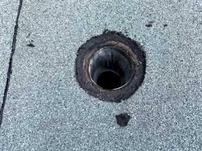 経年劣化したアスファルト材(コンパウンド)は固くなり下地に固着しているので、しっかりと削りとります。