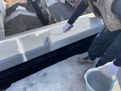 パラペット笠木 ウレタン防水密着工法 トップコート塗布