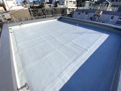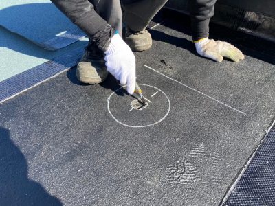 トップコートの性能が失われると次に防水層の劣化が始まるのでとても防水工事にとってとても重要な最終工程となります。
