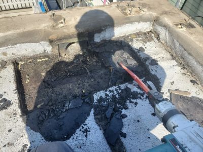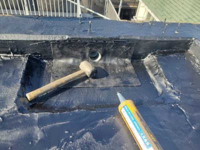 平場は現在のアスファルト防水層の上にカバー工法(オーバーレイ工法)でアスファルト防水をします。