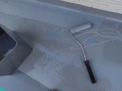 不陸凹凸なく均一にローラー塗りとします。 材料は平場用のレベリングタイプを使用しますが平滑に均すことが大切になります。