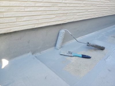 プライマーを使い密着性が高めることで、防水材が剥がれにくくなり、防水本来の性能や耐久性を発揮します。 伸縮の影響を受けやすい立上りには補強クロスを貼ります。 立上りや端末は補強クロスを貼ってその上からウレタンを塗ります。