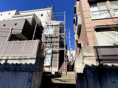 また、足場に飛散防止ネットを設けることで、部材やゴミの落下を防ぎ、近隣の建物への損害を防止します。