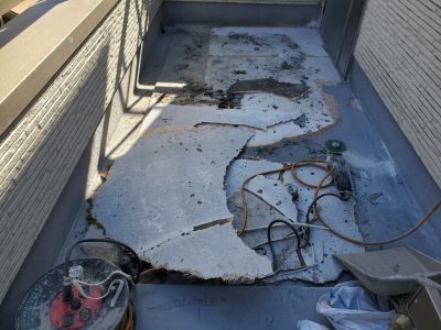 劣化し浮いている防水層が少しでも残ると新たな防水層の密着性が確保できません。