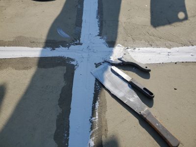入隅シールを打つ目的は平場下地と立上り下地を緩衝する役割もあります。