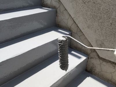 外部階段 ウレタン二層目塗布/補強クロス貼り