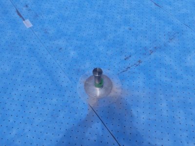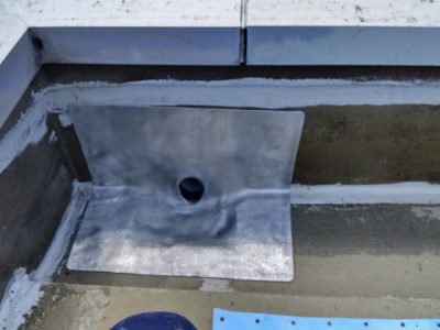 ステンレス製の脱気筒を固定し周囲をシーリング打ちをします。