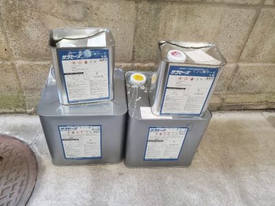 ウレタン防水主材は2回塗りで規定量を塗ります。