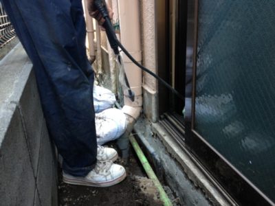 高圧バイオ洗浄します。藻類、微生物も洗い流し、防水のもちを良くします