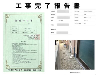 お引渡しの後に工事完了報告書と工事保証書を提出させて頂きます。