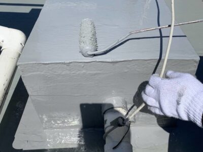 トップコートの性能が失われると次に防水層の劣化が始まるのでとても防水工事にとってとても重要な最終工程となります。