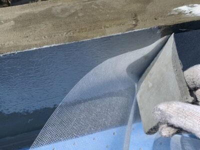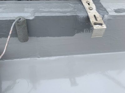 不陸凹凸なく均一にローラー塗りとします。 材料は平場用のレベリングタイプを使用しますが平滑に均すことが大切になります。