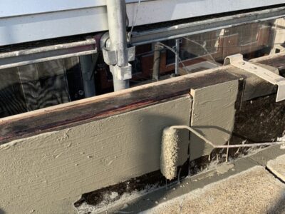 立上り部はカチオンモルタルを塗って下地を整えます。