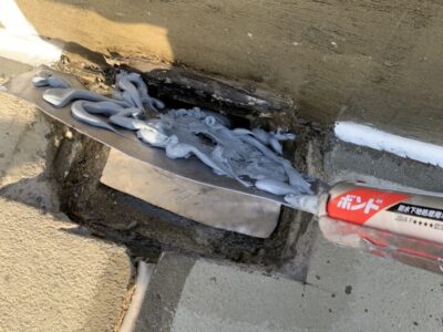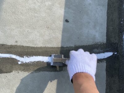 モルタル埋めではなくシーリングを充填することで伸縮性が確保され防水層が切れることを防ぎます。
