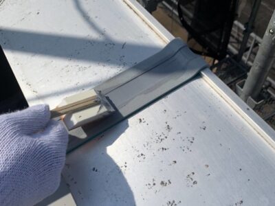 プライマーを塗ってからブリッジシーリングを行い、バックアップ材を取ります。