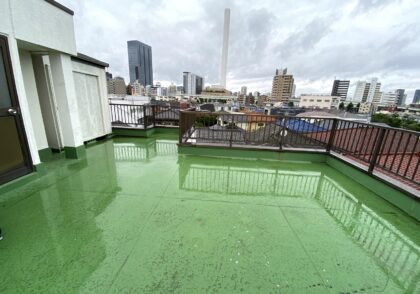 ウレタン塗膜防水 通気緩衝工法 屋上・塔屋:遮熱フッ素トップコート / バルコニー:フッ素トップコート 塔屋防水工事 屋上防水工事 3階バルコニー防水工事 豊島区上池袋K様