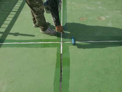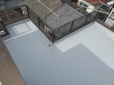 トップコートの性能が失われると次に防水層の劣化が始まるのでとても防水工事にとってとても重要な最終工程となります。