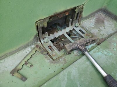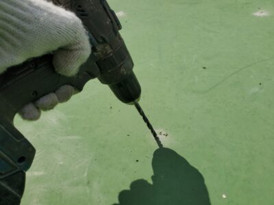 脆弱防水層を撤去しウレタン材を欠損部で埋め補修します。