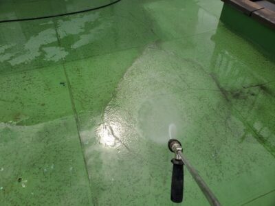 ※高圧洗浄は、防水面に付着している汚れを10~15Mps程度の水圧で洗う作業です。