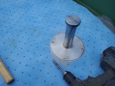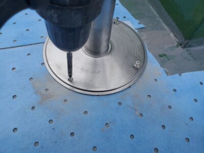 脱気筒は通気緩衝工法に設置する通気装置でステンレス製のプレート+筒状掲揚となっています。
