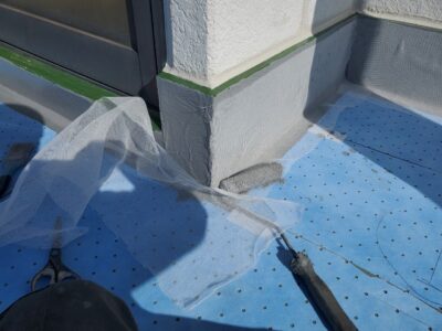 立上りや端末は補強クロスを貼ってその上からウレタンを塗ります。