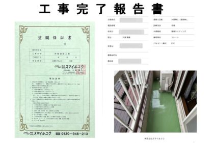 お引渡しの後に工事完了報告書と工事保証書を提出させて頂きます。