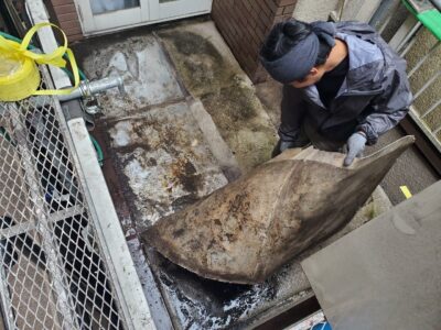 ウレタン塗膜防水 密着防水工法 シート防水全撤去 フッ素トップコート 2F/3Fベランダ防水工事 架設足場 中野区大和町K様