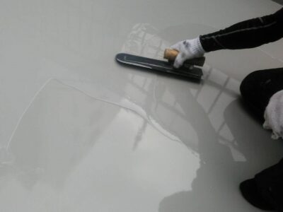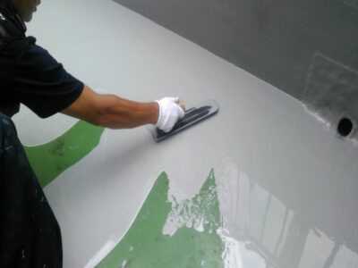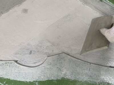 平面に塗るウレタン主材はセルフレベリングタイプを使用し凹凸なく平滑にコテ塗りをします。
