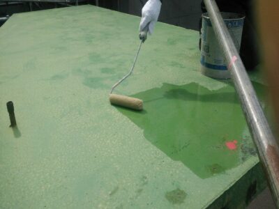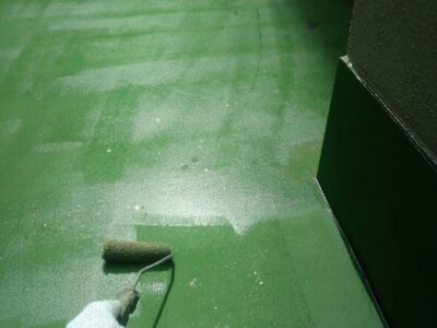 トップコートの性能が失われると次に防水層の劣化が始まるのでとても防水工事にとってとても重要な最終工程となります。