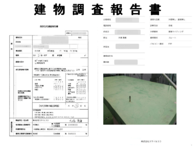 防水層の診断結果を弊社の調査ガイドラインに沿って、防水層を調査し報告書と状況写真をご提出します。