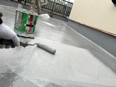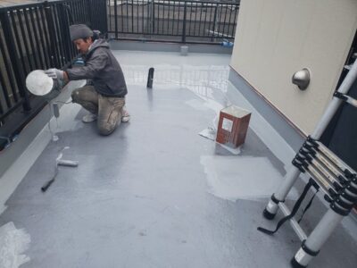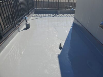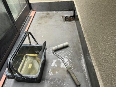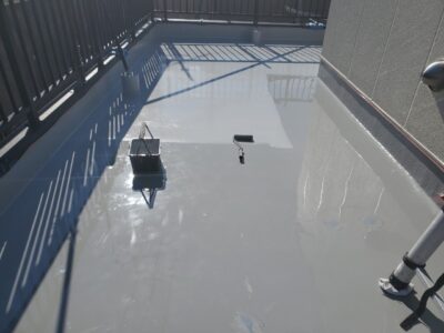 バルコニーも同様にトップコートで防水層を保護して防水完了となります。