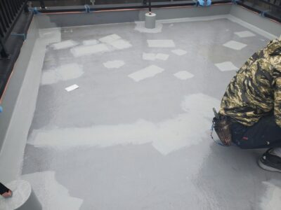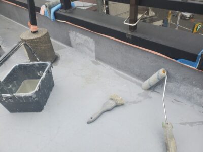 トップコートの性能が失われると次に防水層の劣化が始まるのでとても防水工事にとってとても重要な最終工程となります。