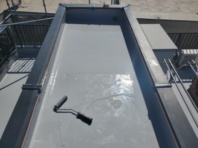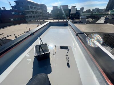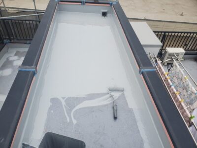 ウレタン防水層はこれで塗りが仕上がりになるので凹凸なく平滑に塗り上げます。