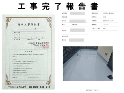 お引渡しの後に工事完了報告書と工事保証書を提出させて頂きます。